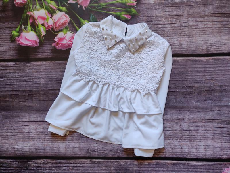 Блуза з комірчиком ⭐ Тканина софт ⭐Комірчик прикрашений жемчугом,на спинці застібається на капельку ⭐ Перід прикрашений кружевом макраме 128 р-довжина від плеча 46 см/ширина під ручками 38 см/рукав 47 см 140 р-довжина від плеча 48 см/ширина під ручками 40 см/рукав 49 см 152 р-довжина від плеча 49 см/ширина під ручками 41 см/рукав 51 см 164 р-довжина від плеча 52 см/ширина під ручками 42 см/рукав 53 см ЦІНА 270 ГРН