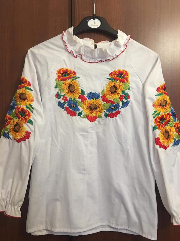 Красивая вышиванка для девочки на рост 146. ПОГ -45, длина - 60, длина рукава -60. В идеальном состоянии, была одета 2 раза