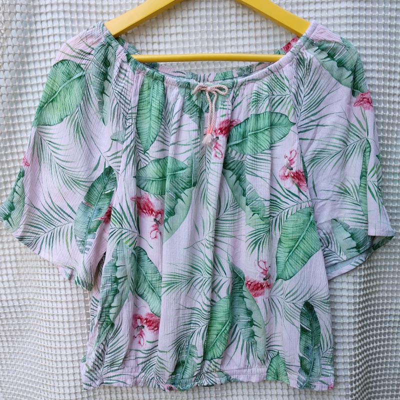 блуза розово-зеленый тропический орнамент h&m 14 лет из вискозы безупречная как новая ширина 47 длина 49.