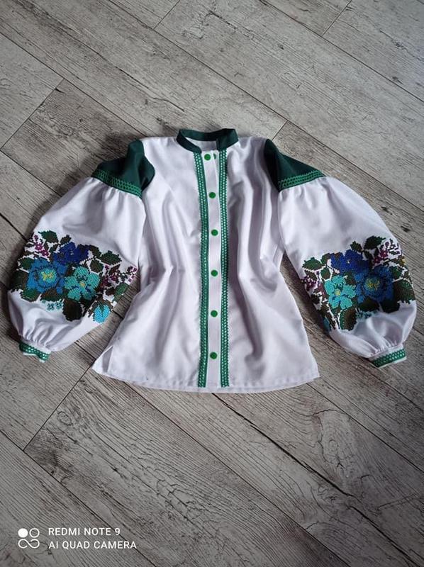 Машинна вишивка, розмірний ряд від 3-х до 12 років. Можлива індивідуальна корекція, а також зміна кольору ниток та тканини.