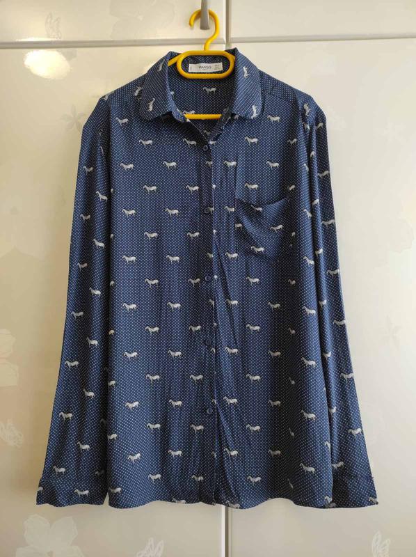 Блуза MANGO на девочку 11 лет Размер - EUR S / USA 4 / MEX CH Цвет - синий + белый. Рисунок - фото №3 Блуза в отличном состоянии. Замеры по требованию.