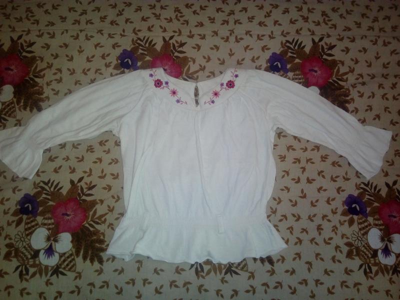 Длина от плеча до низа 41 см. Ширина 38-39 см. Рукав (с горловиной) 38 см. Ткань легкая жатка, красивая вышивка по горловине. Смотрите мою Шафу - есть подарки / бонусы при покупке любой вещи 1:1 🎁