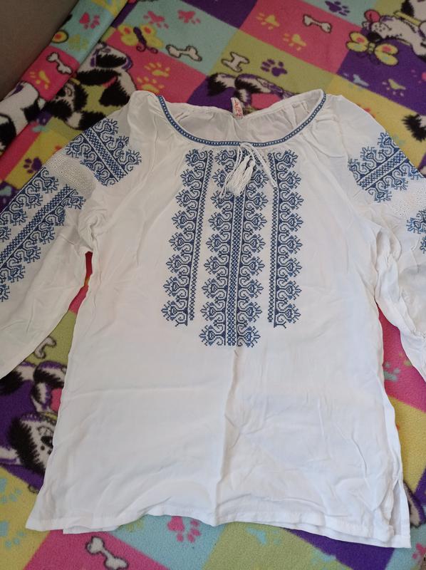 вышиванка из синего цвета. надели один раз в 1 сентября. Размер указан 44, но более подходит на 12-13 лет, рост 155-160. все замеры надав. ткань поплыс Оплата на карточку или накладной платеж