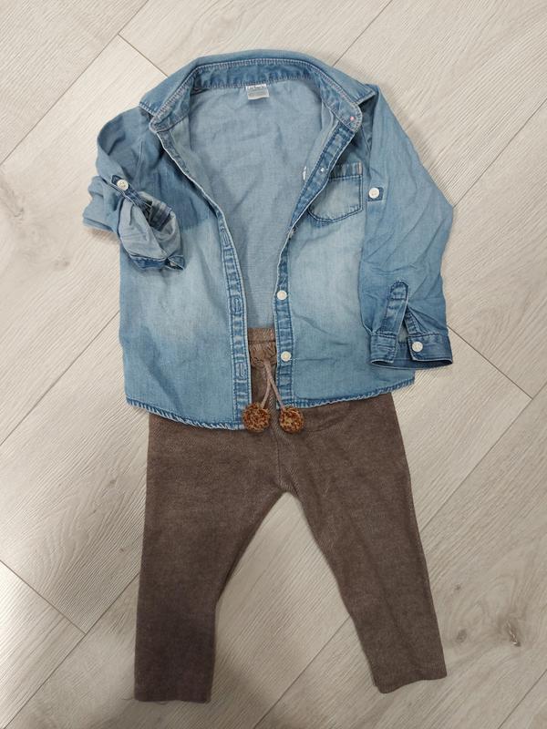 джинсовая рубашка. Размер 2 года. состояние отличное. можно носить как накидка сверху на футболку, так и основной слой. Рукава можно подкатывает, есть пуговичка.