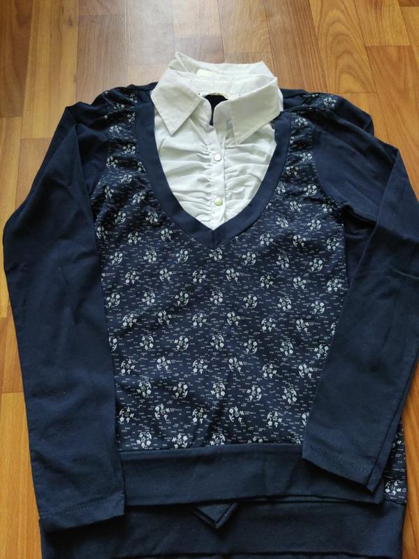 Обманка с рубашечным воротником -200гр - Турция качество отличное, воротник как в рубашках, на кнопках спереди в мелкий цветочек, сзади однотонный -синий 140 р - длина-45 см длина рукава- 49 см грудь- 31см 176 р длина -53,5 см длина рукава-54 см грудь-37,5 мм