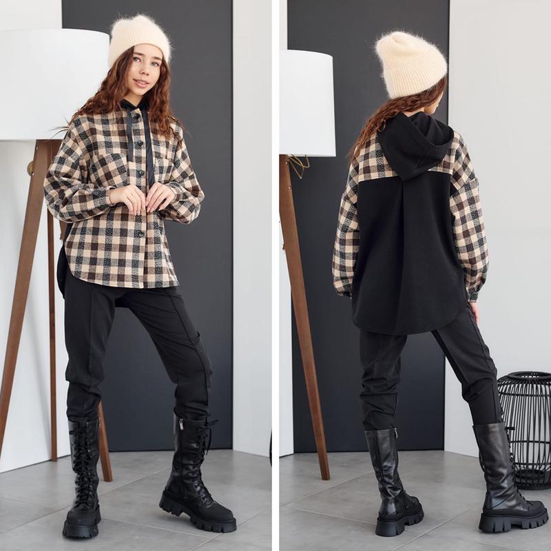 🦤ТРЕНДОВАЯ Рубашка в клетку с капюшоном OVERSIZE 🦤ткань тёплая байка+тринитка с начесом КАЧЕСТВО СУПЕР размер/🦤длина по переду/пог/рукав от горловины 140/🦤58/51/63- 146/🦤60/52/65- 158/🦤63/53/69- 152/🦤62/53/67- 164/🦤64/54/72- +-2см
