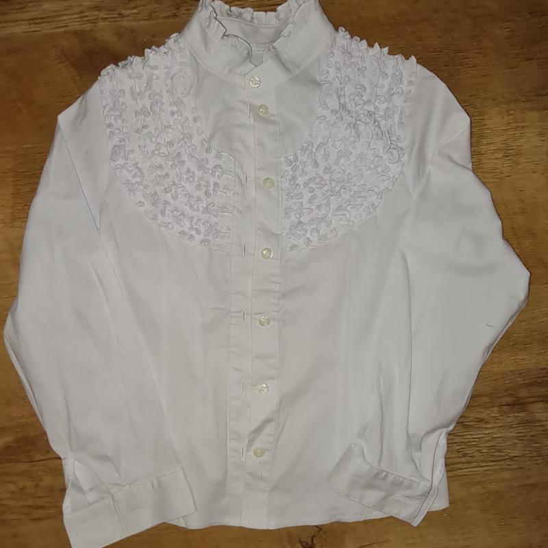 Белая блузка для девочки на рост 140, состояние идеальное. Была одета два раза.