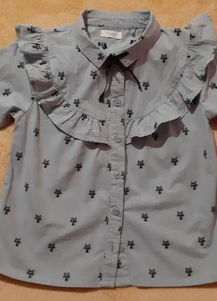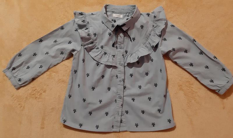 Нарядная блуза Некст котиками с милым рюшем и бантиком, 2-3 года, можно дольше