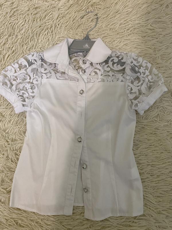 Блузка белая нарядная на рост 116, одели пару раз, в отличном состоянии.