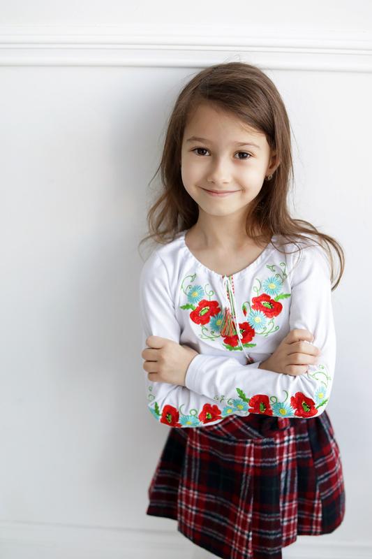 Машинная вышивка выполнена гладью. Материал: 95% хлопок. 5% эластан Комфортная и невероятно красивая футболка для девочек с богатой яркой вышивкой на груди и рукавах