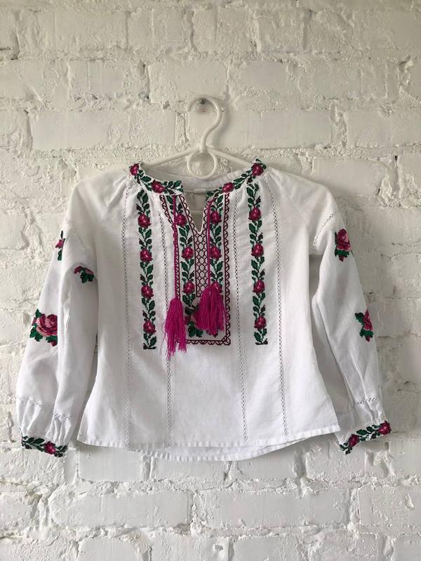 Очень красивая вышиванка на 6-7 лет. Длина 45 см, ширина 36 см.