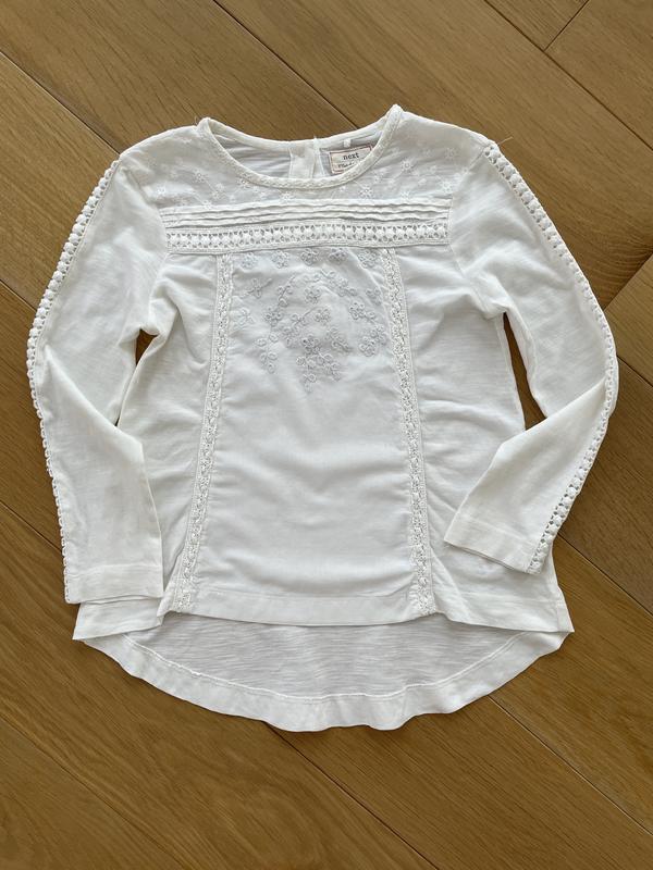 Кофтинка - блузка next на 3-4 роки, довжина перед 40см, позаду 49 см , плечі 29 , рукав довжина 38 см
