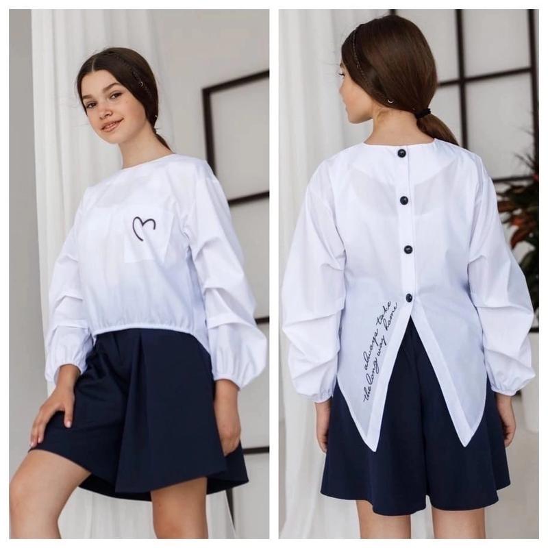 МЕГА МОДНА БЛУЗА! супер стильний крій тканина бавовна спинка на ґудзиках рукав ліхтариком (написи та серце можуть відрізнятися) СУПЕР ЯКІСТЬ! ціна 410 грн розмір/довжина по переду/пог/рукав від горловини 140/41/44/60 146/43/45/61 152/46/46/62 158/48/47/63 164/49/48/67 +-2см