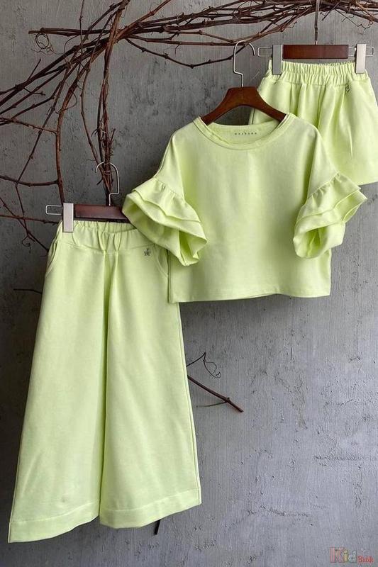 Приймаємо оплату карткою "Пакунок малюка". Стильная блузка цвета лайма для девочки. Модель выполнена свободного кроя в стиле оверсайз со спущенной линией плеча. Элегантный вид блузе придают рукава с воланами. Прекрасный вариант как для повседневной одежды, так и для праздничной.