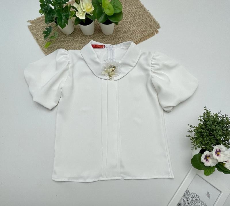 💖НОВИНКА СЕЗОНУ! Неймовірно ніжна блузка тканина софт молочний по спинці блискавка рукав ліхтариком 💖прикрашена брошкою СУПЕР ЯКІСТЬ! ціна 395 грн розмір/💖довжина/пог 116/💖46/37-1шт 122/💖47/38-1шт 128/💖48/39-1шт 134/💖48/40-1шт
