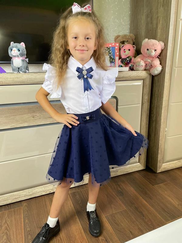 Стильна Рубашка для красунь короткий рукав, Тканина котон хб Брошка в комплеті ІЗ СИНЬОЮ БРОШКОЮ! Розміри: 122 128 134 140 146