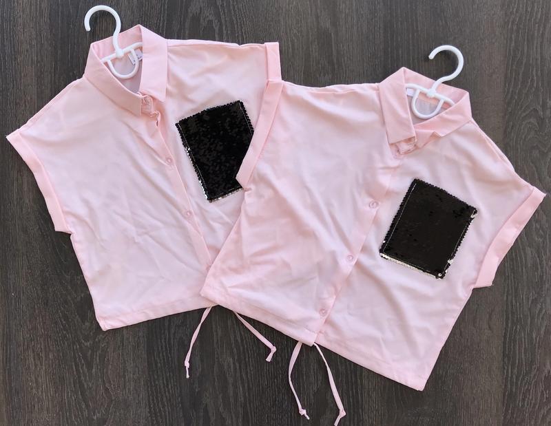 Стильная и удобная рубашка. На кармашке паетки перевертыши (меняют цвет). Ткань: диагональ. Цвет: персик. Цена 185грн Замеры: 134см. длина от плеча - 41см, ширина - 38см. 140см. длина от плеча - 42см, ширина - 39см. 146см. длина от плеча - 45см, ширина - 40см. 152см. длина от плеча - 47см, ширина - 41см.