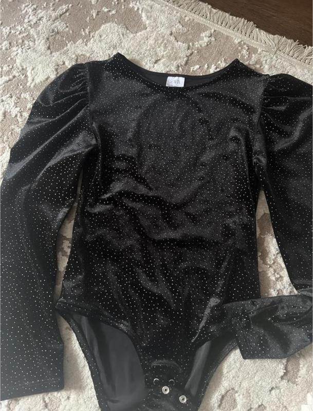 Боди, вельвет черный с напылением. Очень шикарно смотрится на девочке, тянется. Качество отличное. Одито два раза. Джинсы также в наличии на странице