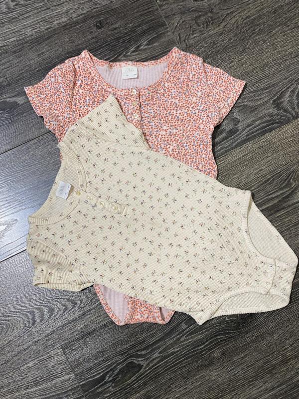 Цена указана за 2шт. Два боди на один возраст 10/140. Розовый: ширина под руками-30см, длина в застегнутом виде-50см. Бежевый: ширина под руками-28см, длина в застегнутом виде-48см. Тканина тягнеться. Последнее фото-эффект.