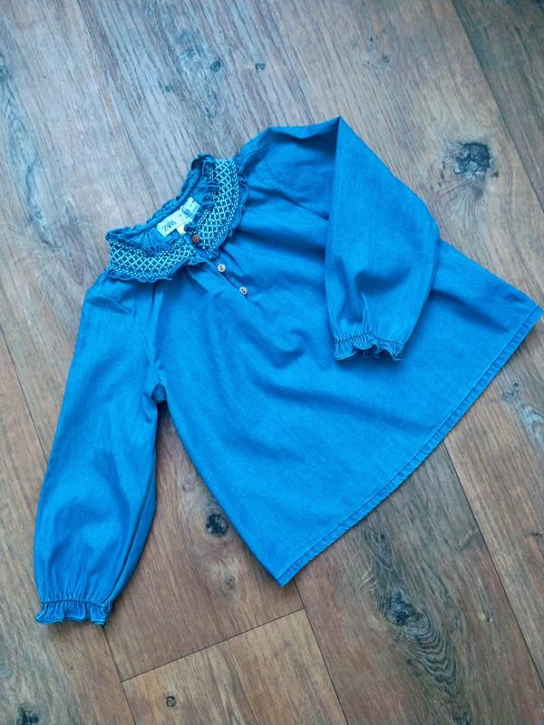 Красива блуза, блакитна, невелички гудзики, комірець з вишивкою. Довгий рукав під резиночку. Розмір: 104 зріст (3-4 роки), Довжина блузи: 40 см Довжина рукава: 33 см ПОГ 33 см ПОБ вільно Матеріал: 100% коттон Нова За запитом відправлю додаткові фото або відео. Доставка по Україні за рахунок покупця. Повернення немає. Оплата на карту Приват або Моно, можлива оплата накладеним платежем