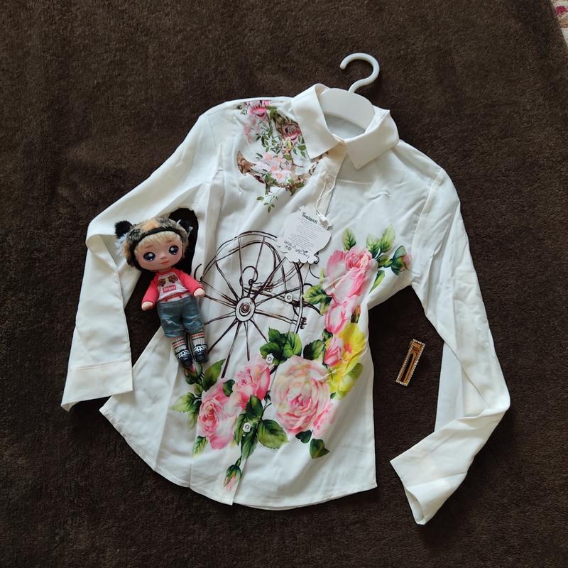 Блуза подросток Размер 128, Размер 134, Размер 140, Цвет шампань Принт цветы Замеры на последнем фото По размеру подойдут соответственно заявленным, но на худи или средней телостройки Перчатки подгибаются до локтей, есть пуговица Ткань чуточку просвечиваются. Ткань мягушка к телу (Полиэстр, вискоза) Возможно оформление безопасной покупкой через Шафу 👌 😊
