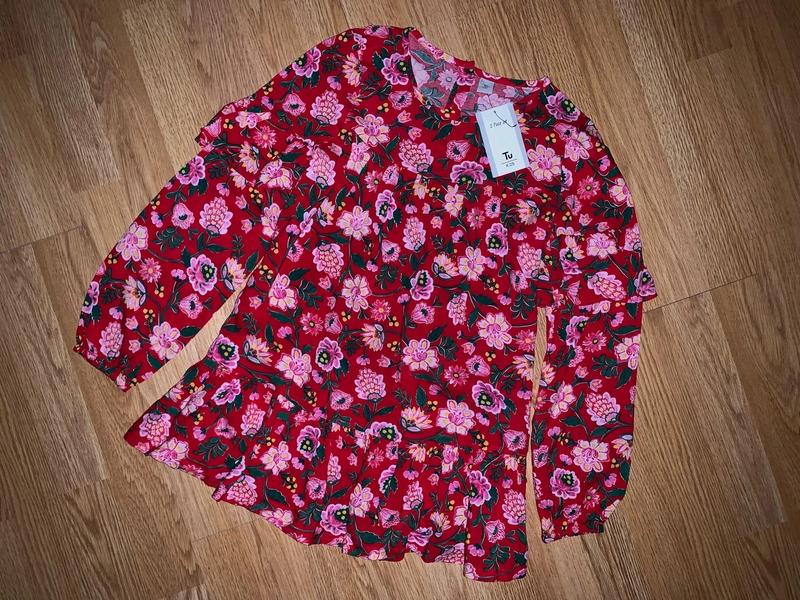 Очень красивая блузочка в цветочный принт с рюшами Tu 10р 145грн Длина 63, рук от плеча 53, пог 42 Нова