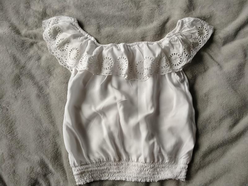 Блузочка білого кольору з елементами мережива,зверху та знизу на резиночці,H&M,на 9-10 років