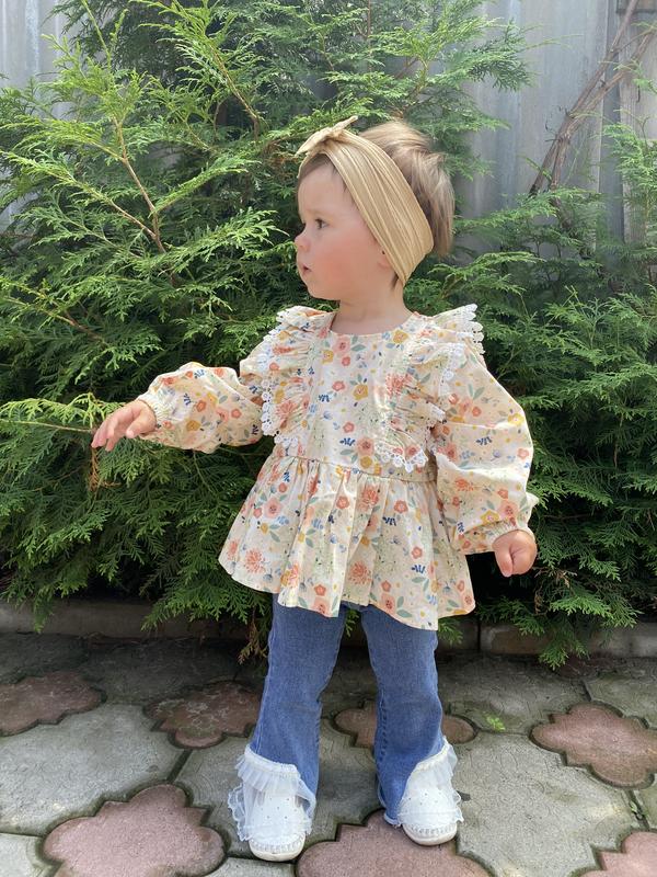 Стильный набор: блузка + джинсы. Мега крутые джинсы с клешным кружевным низом. Классно тянутся и на резинке. Блузка легкая, с резиночкой на ручке. Стильный набор для вашей красавицы. За суперскую цену❤️🔥