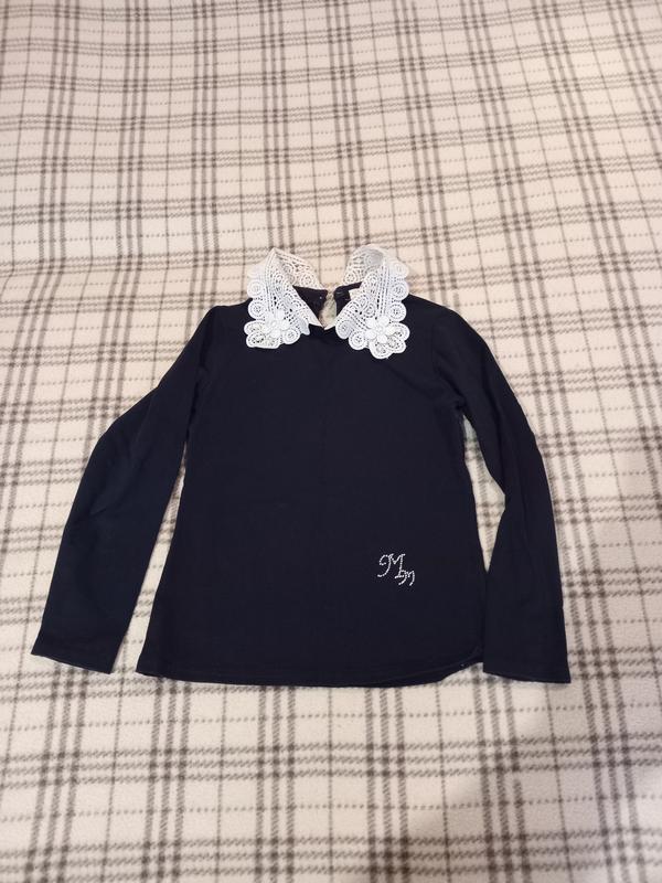блуза с гипюровым воротничком, застежка на пуговку сзади
