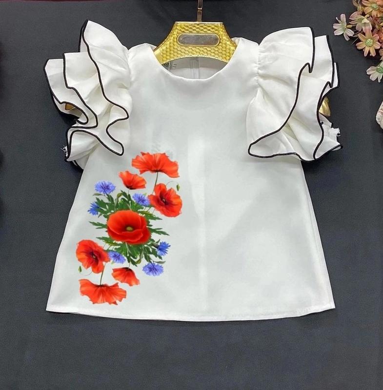590грн ✅️Отправка 1-5 рабочих дней Легкая, нежная блуза с красивыми рукавами-оборками и шикарным принтом 😍 Сзади потайная молния Ткань: костюмка, хорошего качества Принт: термонакат: не трескается, не линяет! Рекомендации: Только ручная бережная стирка!) Замеры: +-1-2см 💞р.116- длина 39.5/ ОГ 62 💞р.122- длина 40/ОГ 66 💞р.128- длина 41 / ОГ 70см 💞р.134- длина 42см / ОГ 72СМ 💞р.140-длина 44см / ОГ 73см 💞р.146-длина 46см / ОГ 74см 💞р.152-длина 49см / ОГ 80см 💞р.158-длина 50см / ОГ 82см 💞р.164-длина 52см/ОГ 84СМ