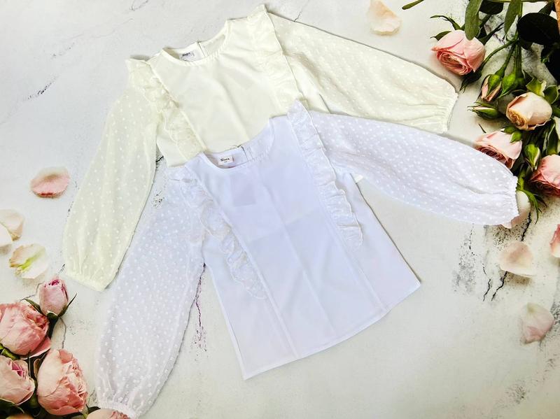 ◦ Артикул: 8378 Блуза для дівчинки «Яніна» Розміри: 122,128,134,140,146; Тканина : Софт, шифон жаккардовий; Ціна: 465 грн Кольори: білий, молочний
