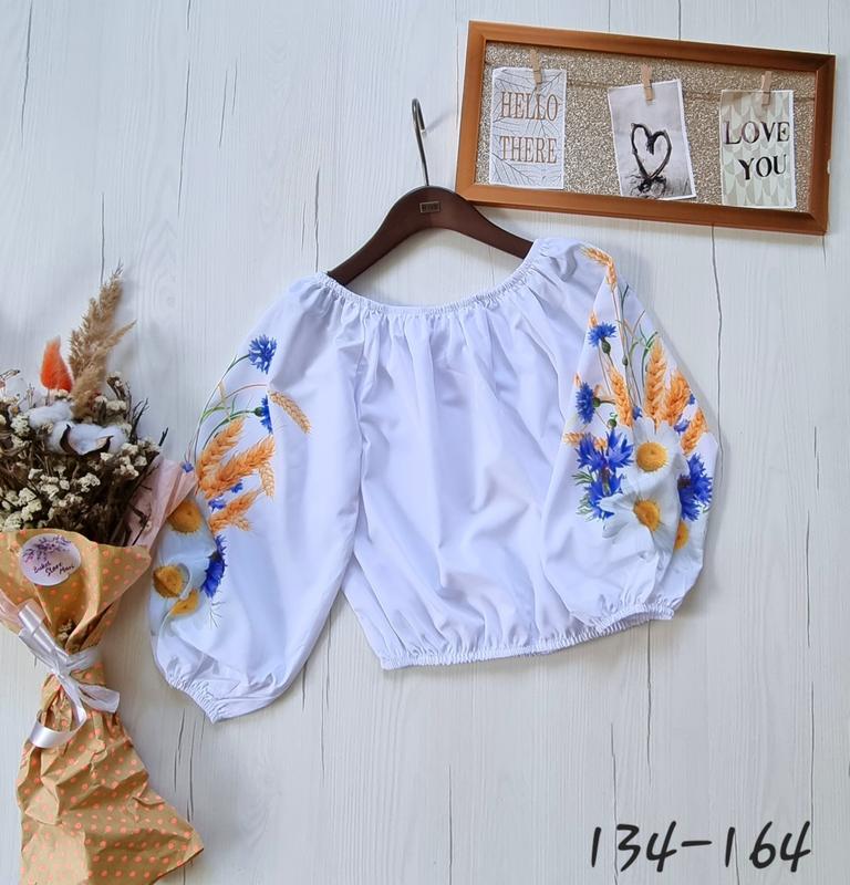 В НАЯВНОСТІ ЯСКРАВИ БЛУЗЫ С ЦВЕТКОВОЙ ОРНАМЕНТОМ Тканина супер софт рисунок качественный(не линяет, не выстирывается и не трескается) РЕКОМЕНДУЮ! ЗАМІРИ: 134(3 шт)-длина 40, пог 44,рукав 45 140(2 шт)-длина 42, пог 45,рукав 47 146(1 шт)-длина 44, пог 47,рукав 50 152(2 шт)-длина 45, пог 49,рукав 52 158(1 шт)-длина 48, пог 51,рукав 54 164(2 шт)-длина 52,пог 55,рукав 55 +-2 см
