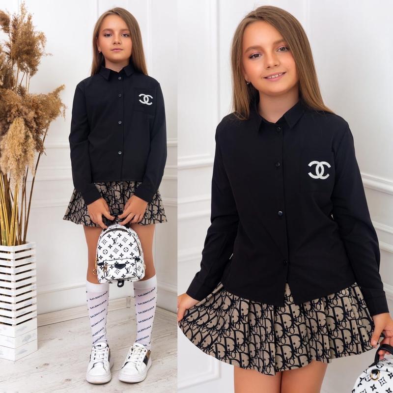 Блуза арт. sev. 853 Размеры: 128, 134, 140, 146, 152 Тканина: супер софт Цвета: белый и черный Фурнитура - значок Стильная блузка для идеального стильного школьного образа. Легкая ткань (не парит).