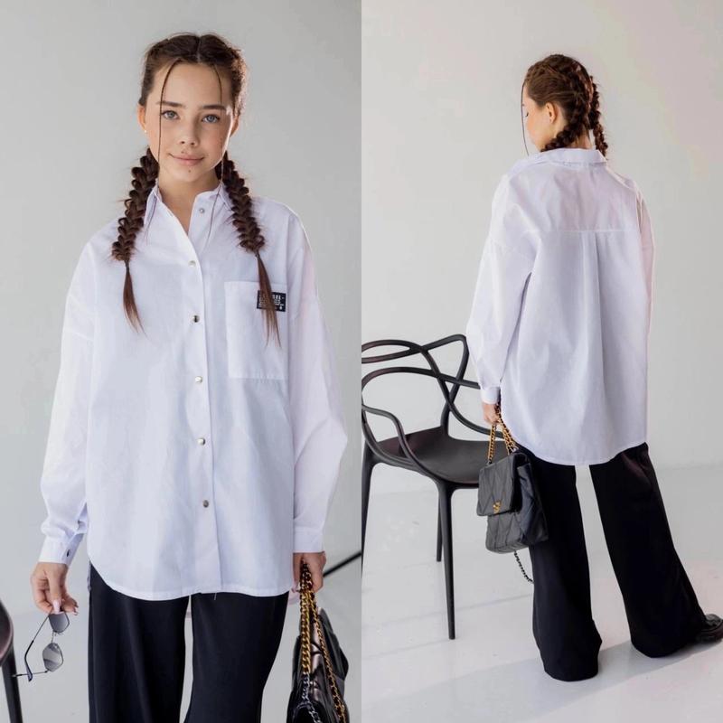 М 🧡В наявності 🧡 Стильна сорочка OVERSIZE тканина бавовна застібається на кнопки заміри:довжина спереду/пог/рукав від горловини 140-146-64/53/62 146-152-66/54/65 152-158-68/55/66