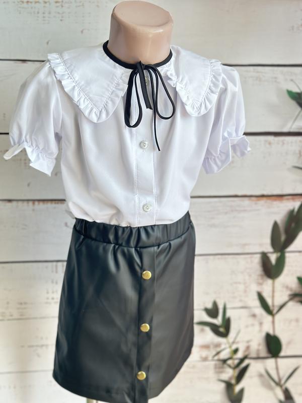 Красивая школьная блуза с трендовым воротничком.В наличии 116,122,128,134,140.Идеальное качество и посадка.