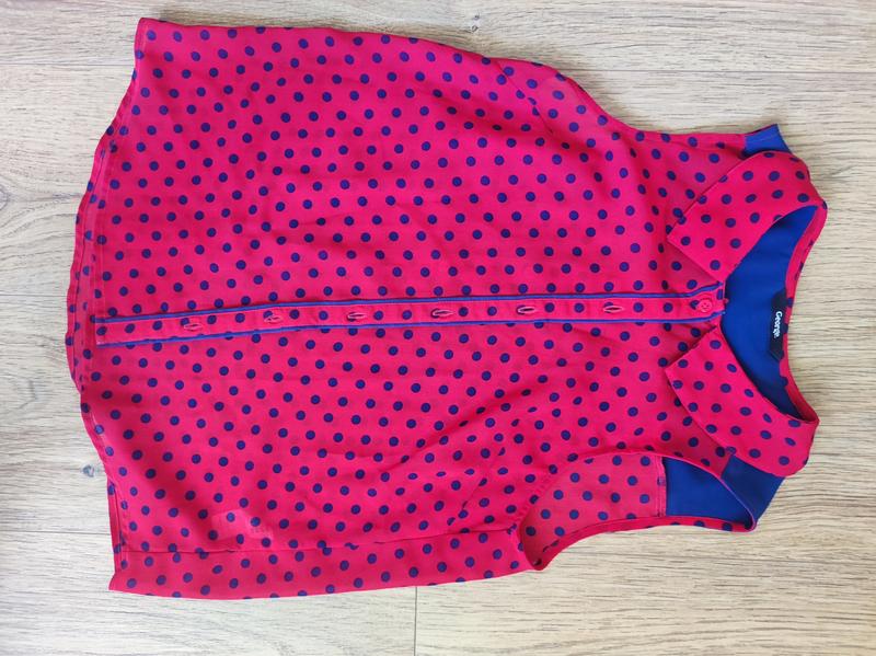 шифонова блузка .червоного кольору у синій горошок на ріст 158-164 23-14 р