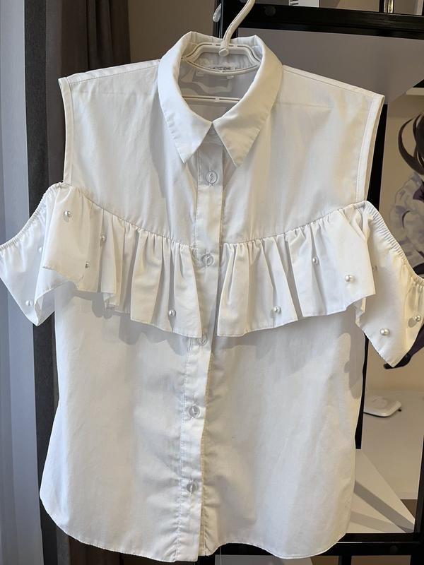Блузка для дівчинки 10-13 років нарядна біла блузка сорочка з перлинками для дівчинки підл...