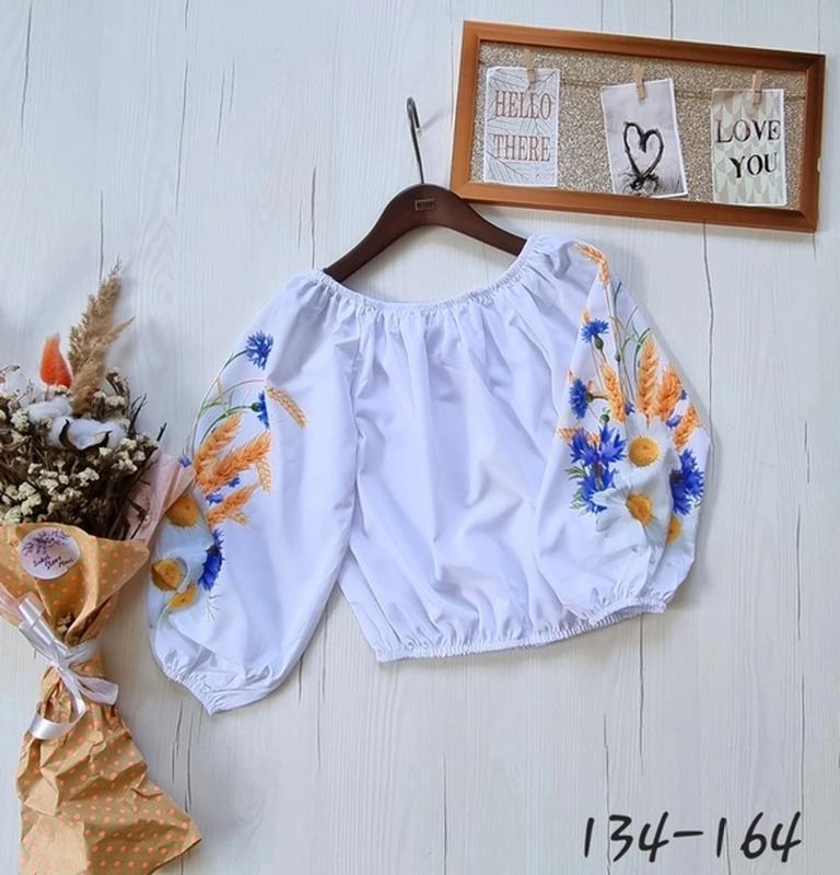 ЯСКРАВИ БЛУЗЫ С ЦВЕТКОВОЙ ОРНАМЕНТОМ Тканина супер софт рисунок качественный(не линяет, не выстирывается и не трескается) РЕКОМЕНДУЮ! ЗАМІРИ: 134(5 шт+2 шт в наличие)-длина 40, пог 44,рукав 45 140(4 шт)-длина 42, пог 45,рукав 47 146(2 шт)-длина 44, пог 47,рукав 50 152(5 шт)-длина 45, пог 49,рукав 52 158(3 шт)-длина 48, пог 51,рукав 54 164(4 шт)-длина 52,пог 55,рукав 55 +-2
