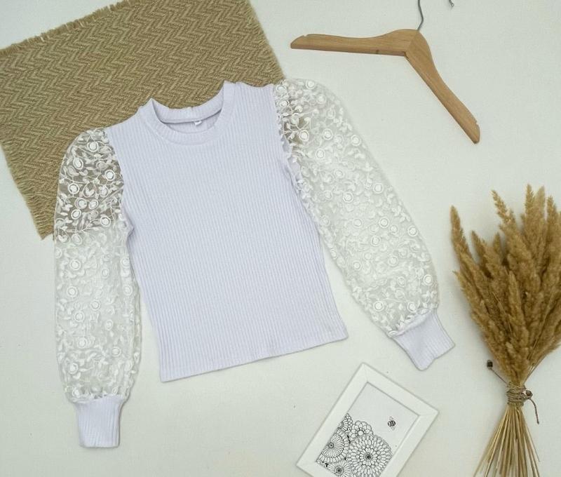 Арт 3297 Нежный лонгслив с кружевом Тканина мустанг Качество супер Цена 630 грн Рост/длин./пог/рукав от плеча похибка+-2см 134/41/32/46-2шт 140/44/33/49-2шт 146/46/34/52-2шт 152/49/35/55-2шт 158/53/36/56-2шт 164/54/37/58-2ш
