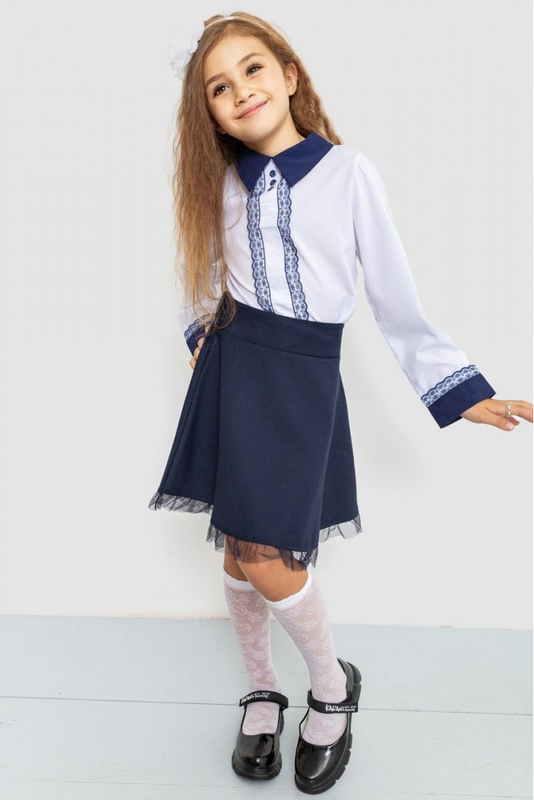 Блузка нарядная для девочек, цвет бело-синий, 172r205-5