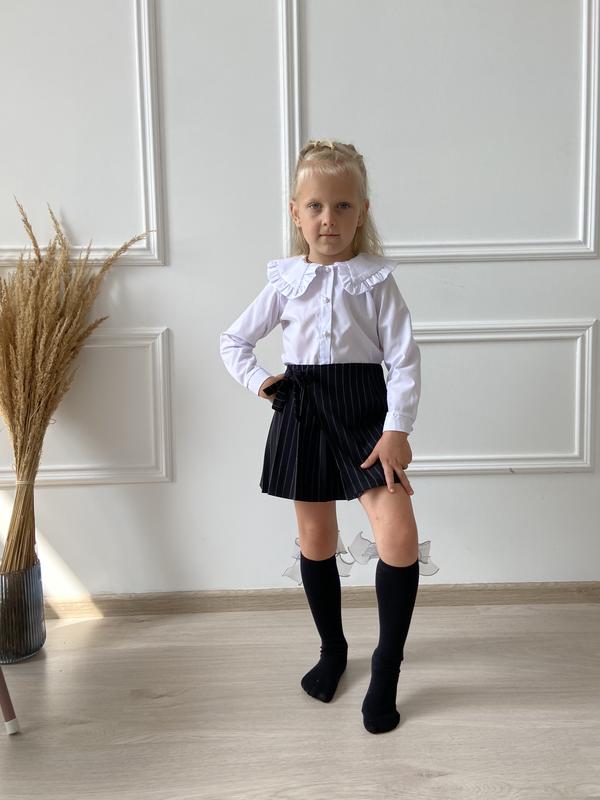 Чудова біла блузка з натуральної тканини, модний комірець. Розмір 110 см . Стан нової Довжина блузки 41 см, ширина 35 см. Рукав від горловини 43 см, сам рукав 36 см