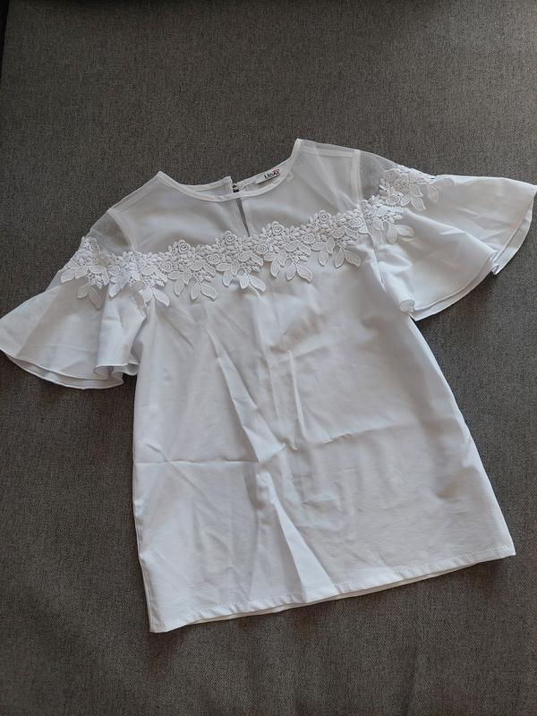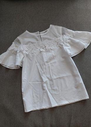 Белая блузка на девочку. Состояние новое Размер 140 ПОГ - 38 см Длина - 52 см