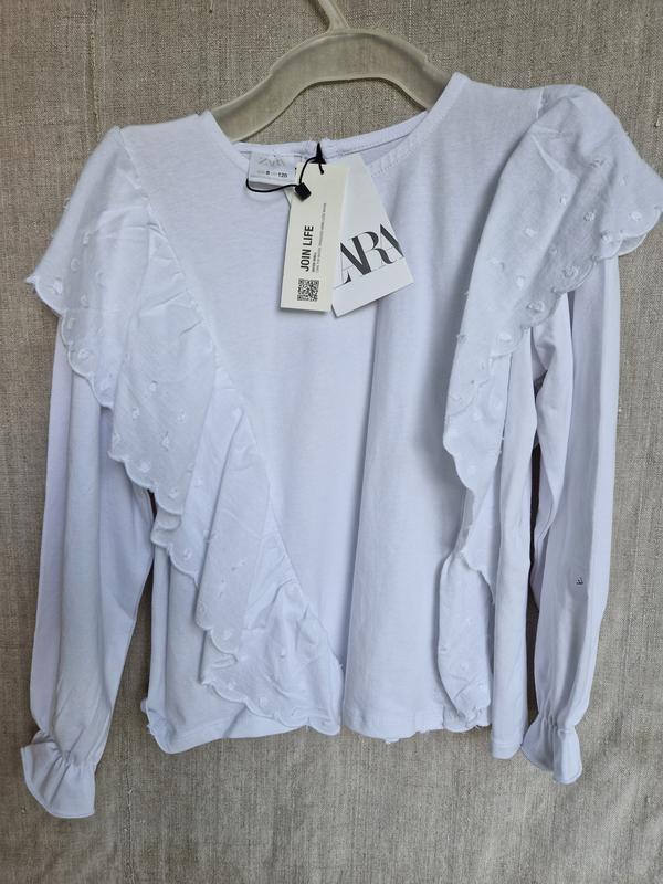 Трикотажная блузочка для девочки, с коттоновыми вставками, на рост 128см. бренд ZARA. Длина кофточки 42см, рукав 43,5см от плеча.