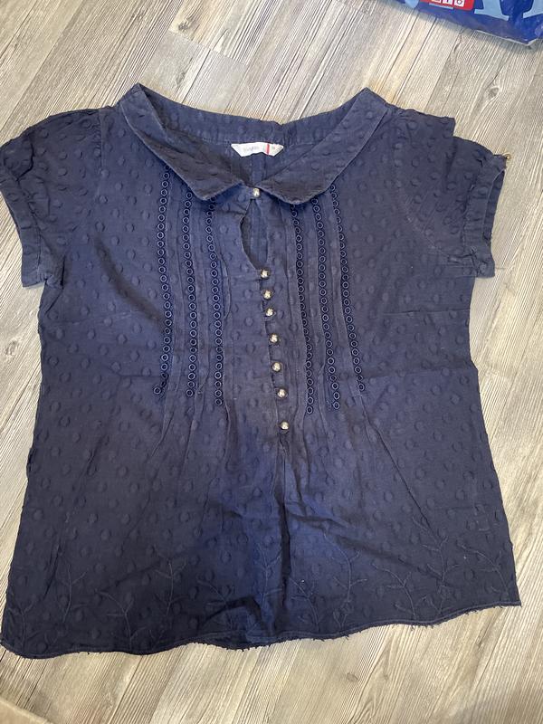 Темно-синяя блузка с коротким рукавом на девочку На бирке 38 размер замеры есть на фото легкий приятный материал оплата на карту