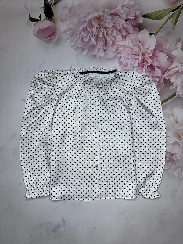 Стильное решение для школы😉 Белая блузка в горох Вискоза Состояние идеальное 🏷️Zara 11-12 лет/152 Длина 54. ПОГ 46. Рукав 54