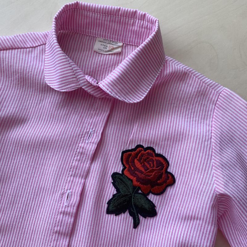 Легкая рубашка отличного качества 5-7 лет Длина 45 см Рукав 40 см с помощью пуговицы фиксируется на 3/4 ПОГ 35 см