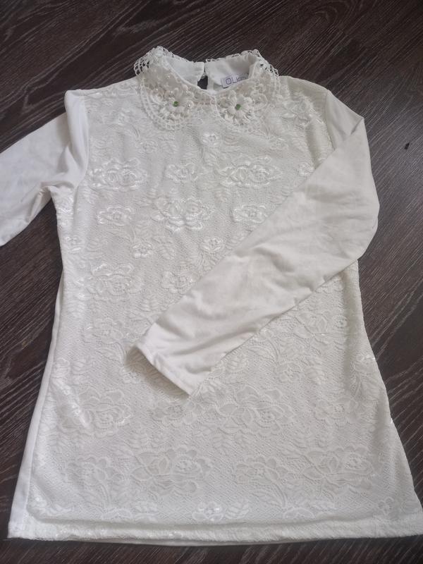 Нарядная блузочка для школы или торжественного события. Перед украшен гепюром, воротник - кружево + стразы