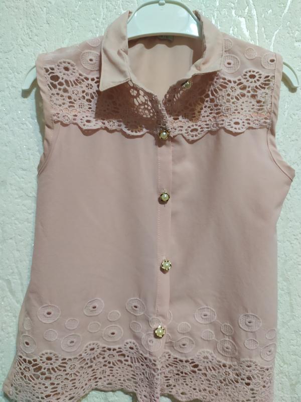 Нежная и стильная блузка для девочки на возраст 5 лет. Длина - 41см. Украшена красивым кружком. Из дополнительных вопросов, пишите.