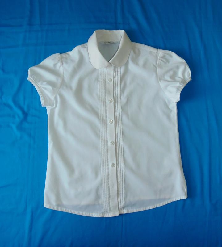 белая блузка для девочки на 9-10 лет в очень хорошем состоянии, из нюансов на вороте небольшая полоса,на фото показано,при носке вообще не видно длина 54см,плечо 13см,плечи 32смрукав 12см,под мышками 40см отправка после оплаты