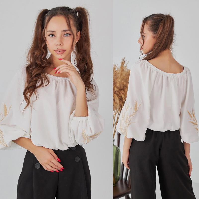 Таня Арт 3576 Супер популярная вышивка колёса на трендовые блузки из американского крепа Супер качество Рост/длиж. посередине/пог/рукав похибка+-2см 140-146/31/42/41-3шт 146-152/32/45/45-2шт 152-158/35/46/47-2шт 164-170/39/48/52-2шт